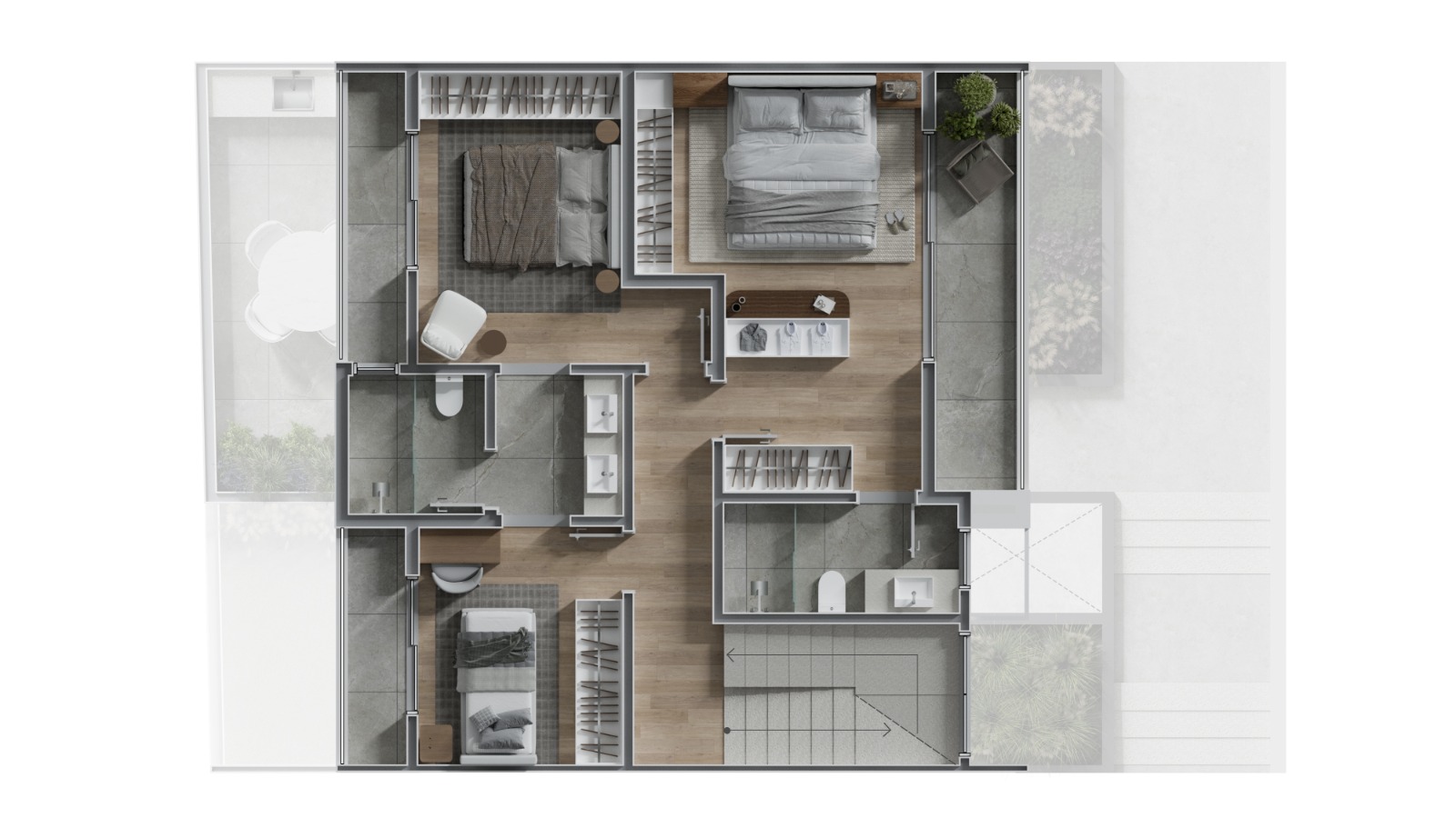 •Área Privativa: A partir de 231 m², com terraço adicional de 49 m²